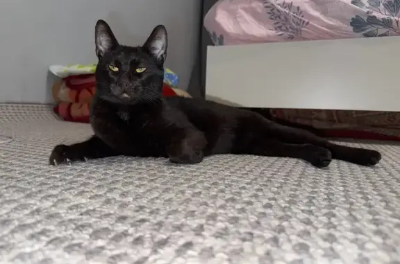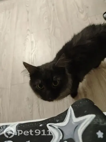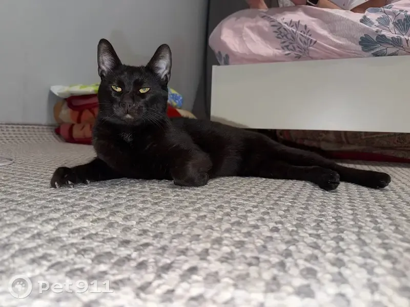 Черная кошка с желтыми глазами, без хвоста. Х...