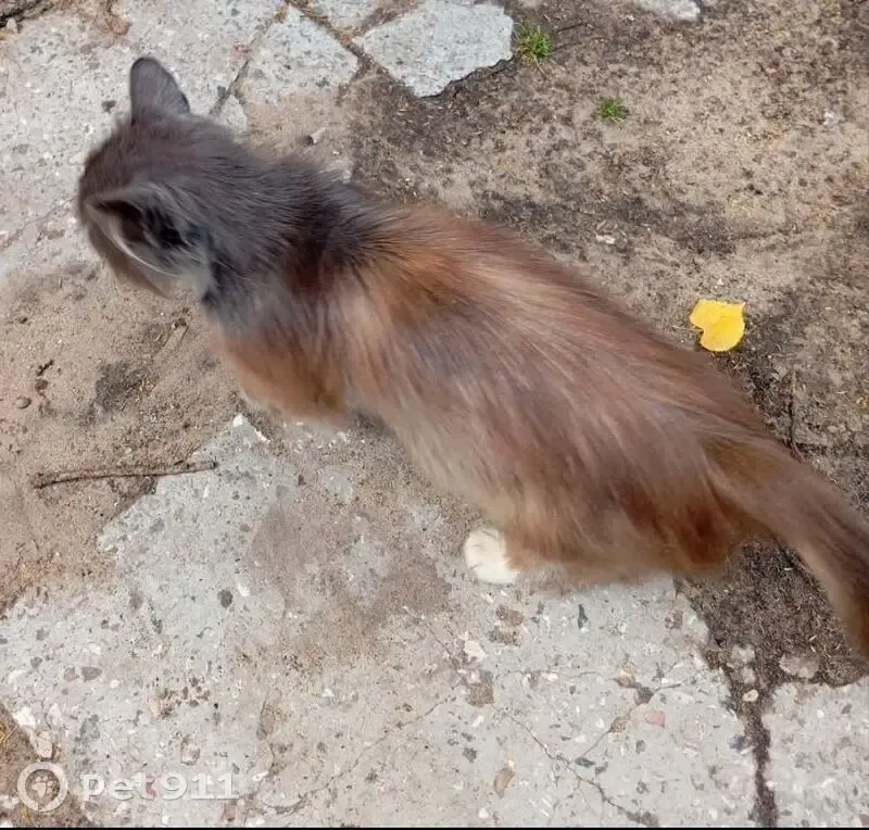 Пестрый окоас, серо, бело, темно, рыжеватая. Красивая. Мелкая кошечка. Наверное ей год или меньше. Родила котенка черного, но он на радуге. Очень ласковая, ей нужен дом.