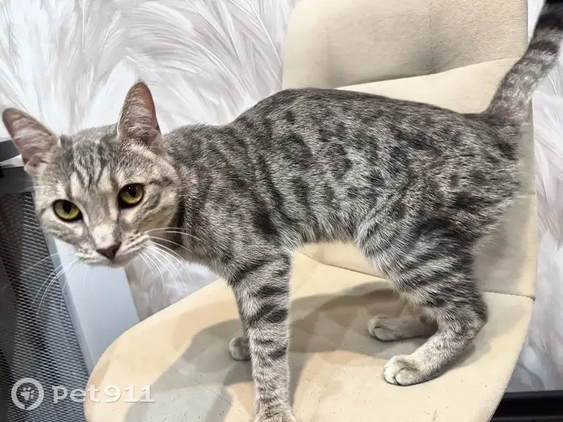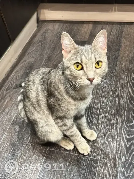 Найдена кошка 07.09 . Серый полосатый окрас, на макушке кусочек без шерсти( возможно от клеща) , на животе маленький шов , скорее всего от стерилизации, голос хриплый, как у рыси