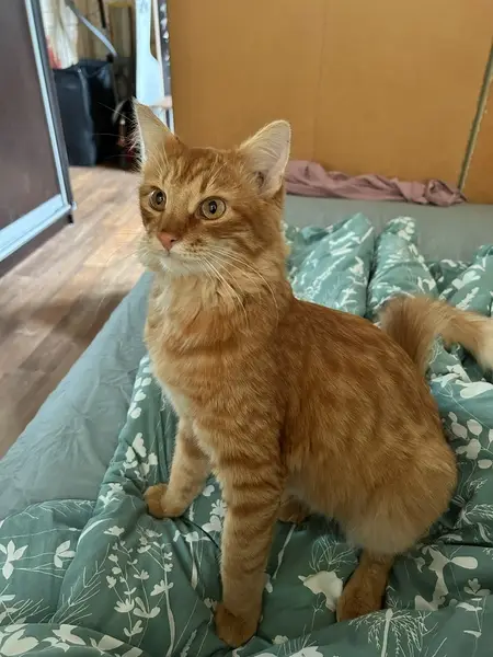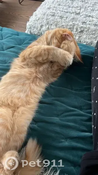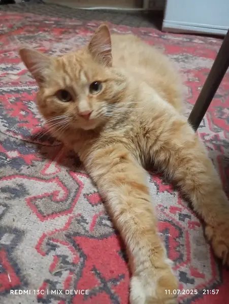 На улице встретился чудесный рыжий котик, явно домашний — чистенький, ухоженный и очень ласковый. Мальчик, примерно 3 года. В ветеринарной клинике подтвердили: абсолютно здоров, активный, любознательный, отлично ходит в лоточек. Мы обработали его от глистов и клещей, сейчас он временно у нас и, надеемся, хозяин найдется.