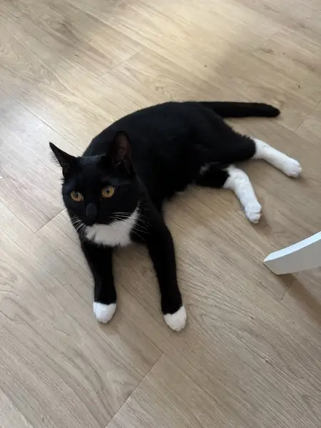 Котик до года, стриженные ногти, домашний, черный, карие глаза, грудка белая, лапки белые. Ласковый, ходит в лоток. Нашли 28.01.25, но 27.01.25 уже был на улице. Бизнес Центр Румянцево, корпус Г, Под пандусом. Очень красивый котик