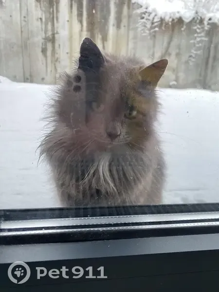 Приходит кошечка к знакомым в серо-коричневая, уже третий год. Может кто-то потерял. Сама небольшая, пушистая, хвост пушистый. Беременная. Очень симпатичная