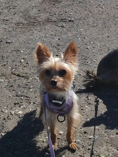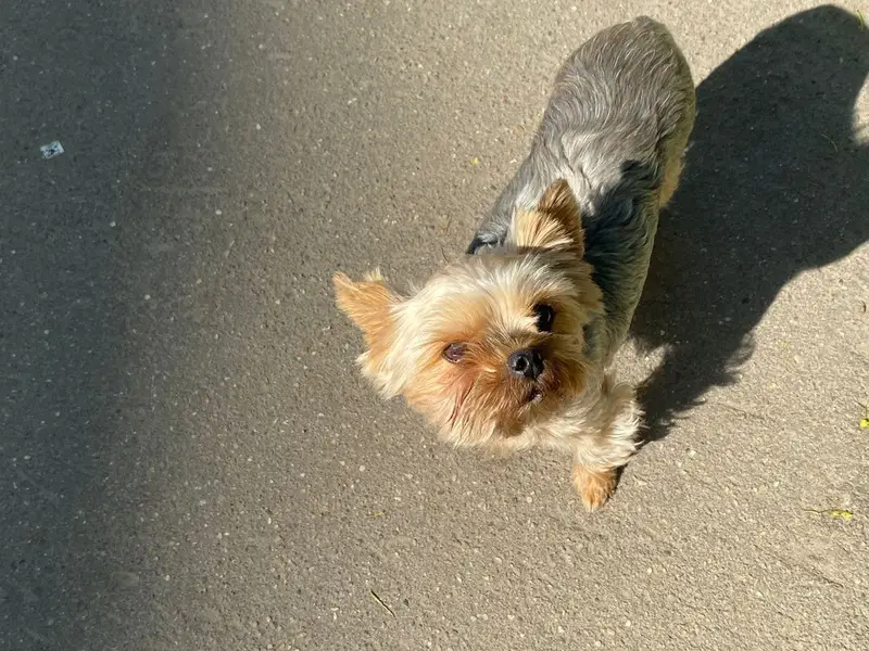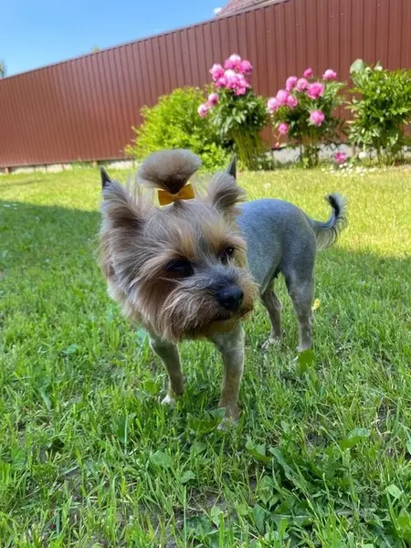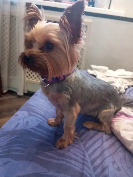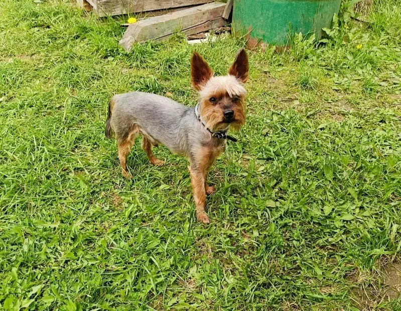Мини Йорк, думаю до 5-6 лет, под стриженный, без клейма, гулял один в лесу газопровод