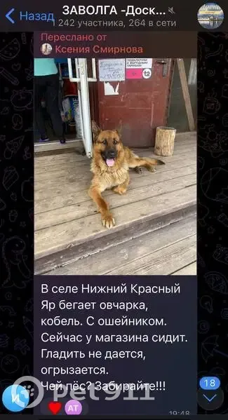 Лысковский район по маршруту Валки - Великовское уже несколько дней бегает овчарка, видно что пес в стрессе, знает команды, но с людьми осторожен. Ищем хозяина 89092957861