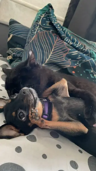 окрас коричневый, над левый глазом небольшой нарост. Хвост купирован. Собака металась по дороге, ведущей от Патрон в сторону Байкальского тракта. Бежала долго: слюна ручьем текла, лапы сводило судорогой. В руки особо не дается, пытается укусить. Но в целом контактная, видно что домашняя. Убежала в СНТ Прибой в точке, отмеченной на карте.