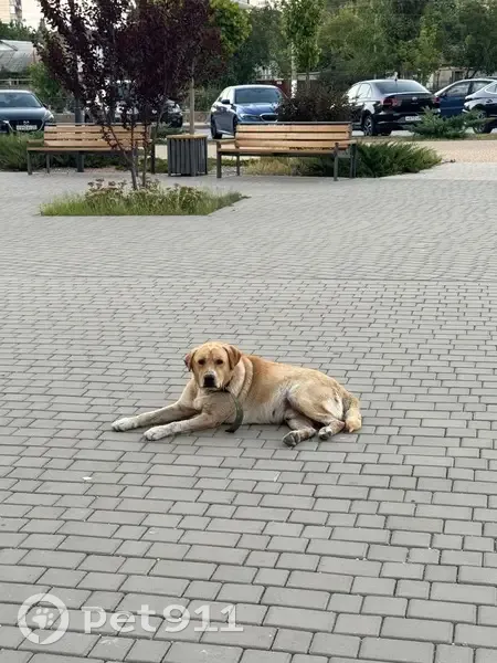 Собака с ошейником найдена на Крымской Весны 5 корпус 2, Симферополь Найдена собака с зелёным ошейником. Район Жигулиной Рощи. Лежит уже часа 3 , несчастные глаза, очень спокойный, ласковый. Я покормила животное, он был очень голоден.