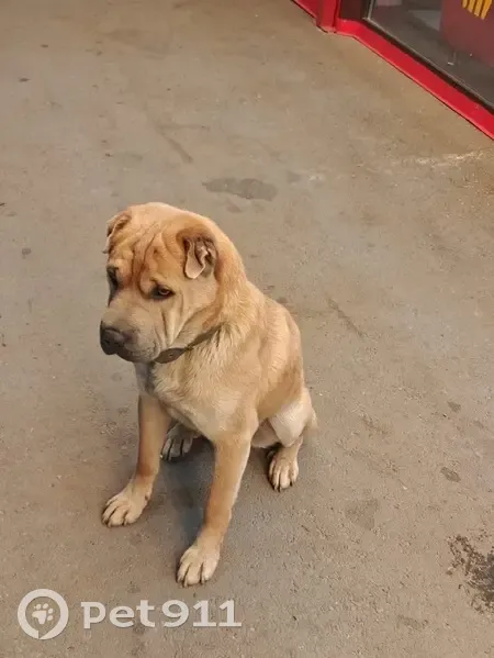 Шарпей , мальчик, был замечен на трассе, появился примерно две недели назад, очень контактный, место указала неточное, координаты скрыла в целях безопасности