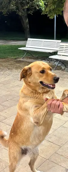 Собака прелестная, очень аккуратная, мы его кормили и в общем он сильно был голоден, там есть несколько столовых и думаю его кормят. Со слов персонала появился недели две назад, очень контактный и подходит к мужчинам, ждет