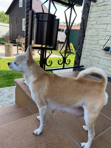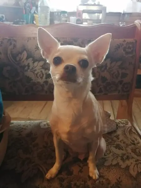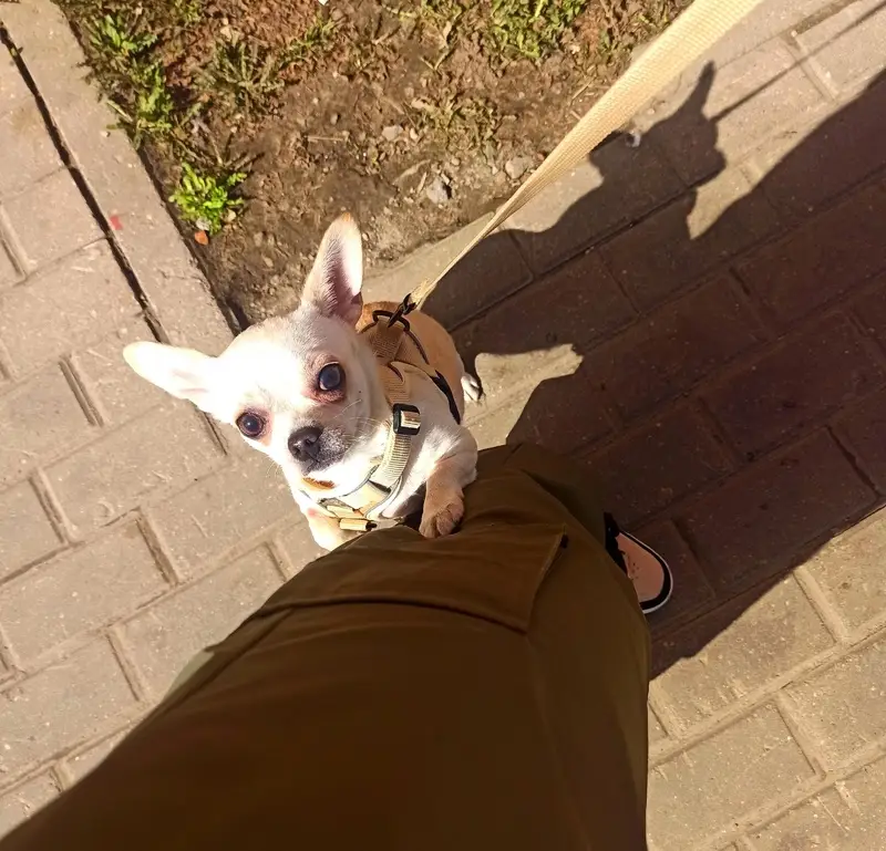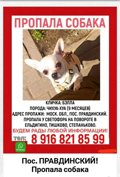 Окрас светлый, ухоженная, явно домашняя (глазки чистые, коготки подстрижены), но без ошейника. Смышленая, активная. Время от времени проявляет характер (гавкает). Очень скучает по хозяевам (все время подбегает к входной двери, просится на улицу), поскуливает.