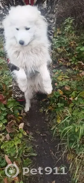 В районе Айских Притесов, возле руин Кургазак. Собака вышла из леса. Напоили, накормили. Взяли на передержку. Долго держать не можем. Пёс добрый и ласковый. Порода Самоед