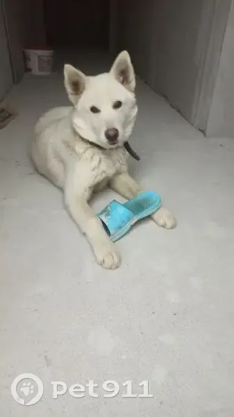 Окрас полностью белоснежный, розовый нос, глазки карие (похож на Вольта из мультика). Очень социален, игривый, слушается. Ошейника на нем не было.Ветеринар определил примерно возраст 6 месяцев, клейма нет, чипа тоже.Ищем хозяина уже 6 дней, теряем надежду, скорее его просто вывезли в лес. Сейчас у нас на передержке, долго держать не можем, т. К дома овчарка, не принимает 2ого кобеля.В туалет ходит на улицу. Очень ласковый малыш, любит обниматься. Ищем старых или новых хозяев. Ему очень нужен дом. Тел 89507037794 Ирина