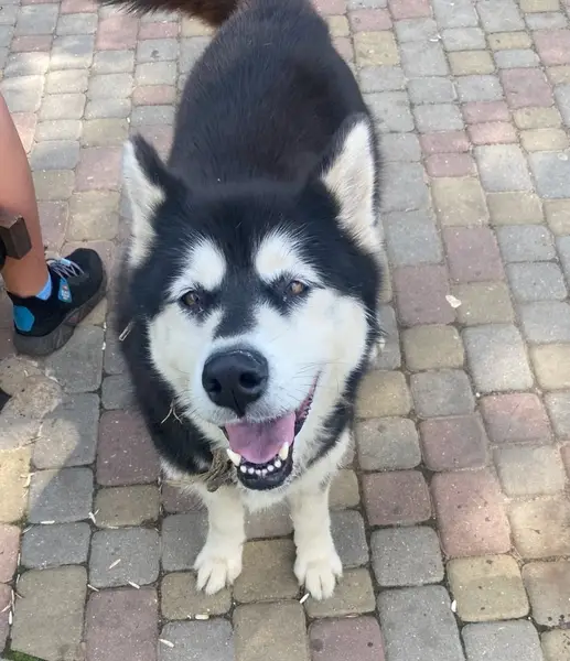 Найдена собака породы хаски , чистый, ухоженный, не пугливый, видно что домашний. Бегает в районе улиц Луговая и Рубцовой в д. Кривское Боровского района уже 4 дня .