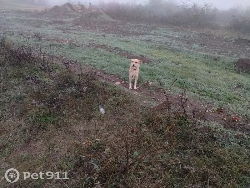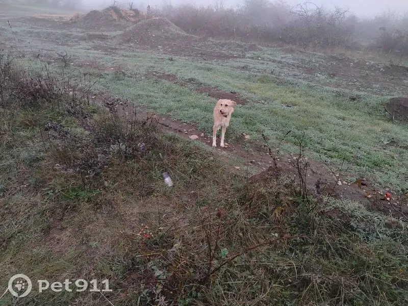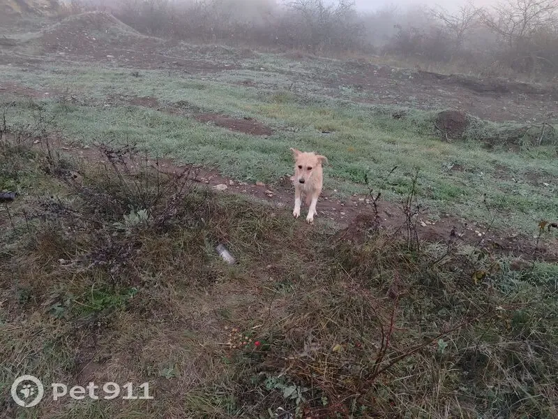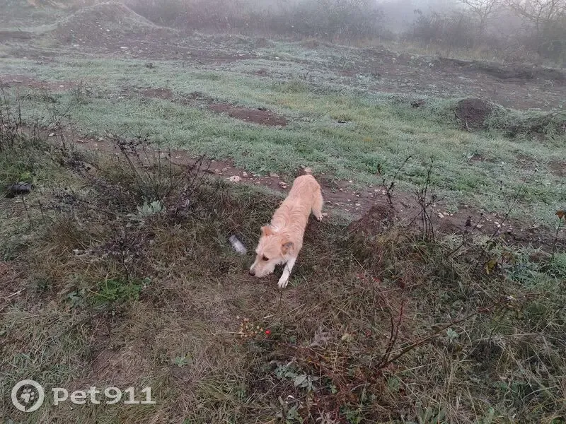 Феодосия.В сторону Ордженикидзе поворот на купола под красной бочкой. Рыжий с ошейником, среднего размера, пугливый(от людей держит дистанцию), без агрессии.