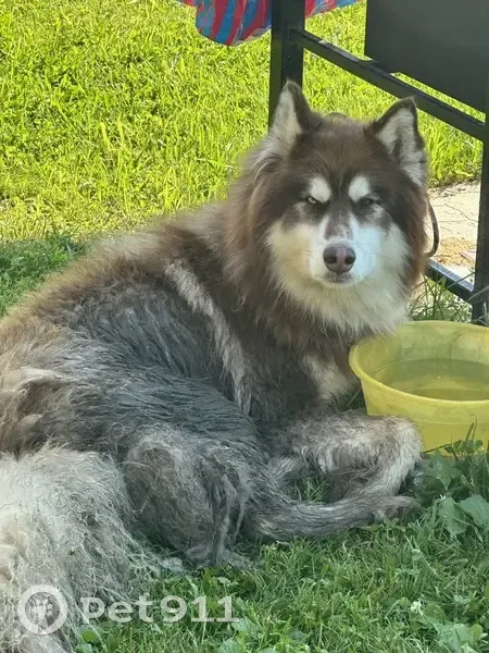 На участок прибежал молодой кобель, в ошейнике, глаза разного цвета) очень дружелюбный, но ошейник не дает трогать. Был очень голодный, грязный, видно, что неухоженный