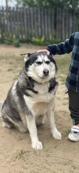 Хаски, кобель, серо-белый, бегал без ошейника, прыгал под машины, вблизи найденыша людей не было. Активный, добрый парень