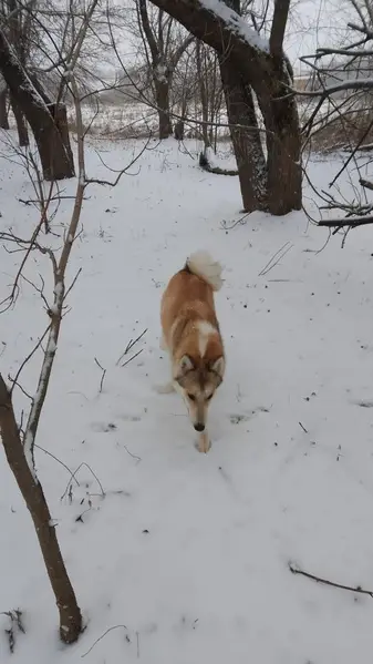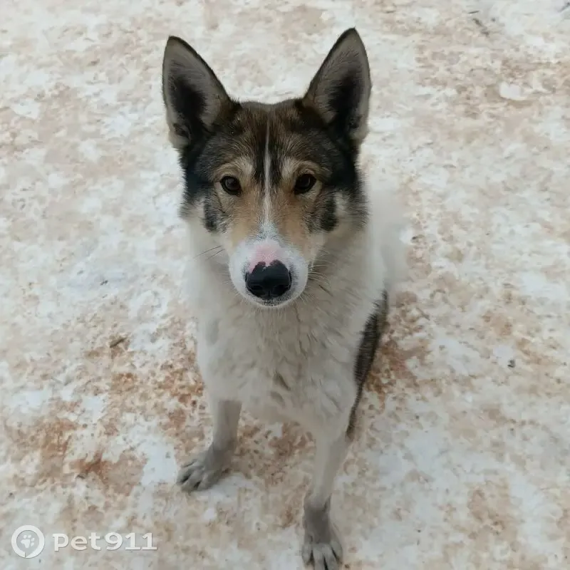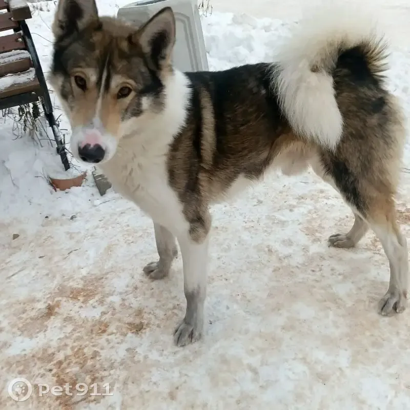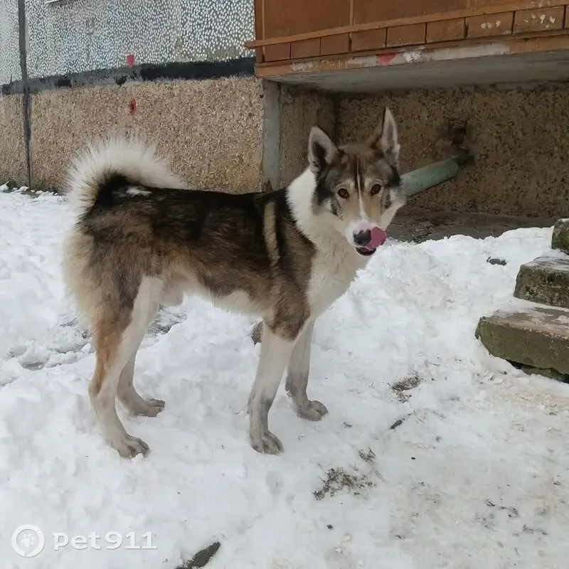 Кобель лайки примерно 1,5-2г, по-видимому вышел из леса худой,голодный и грязные лапы,ходил по болоту видимо.Знает команды,адекватный.К сородичам относится адекватно.