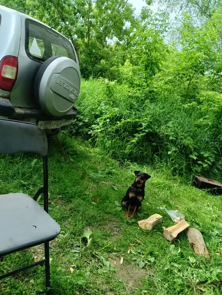 Молодой доберман, черный с подпалом, уши купированы, около года, мальчик, спокойный, уравновешенный, доверчивый, метался по проезжей части напротив стаи уличных собак, очень красивый и доверчивый, людей принимает, машину знает