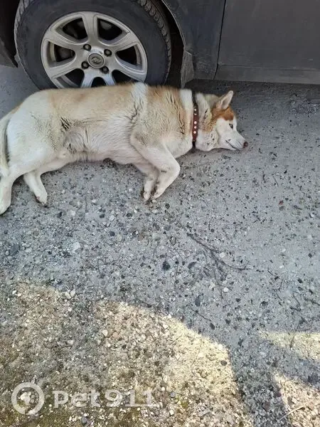 Найдена собака породы Хаски, окрас рыжий с белым. Достаточно ухоженный и упитанный. На нем красный ошейник. Не конфликтных, даже к кошкам относиться адекватно