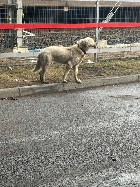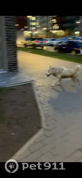 Не поняла мальчик , или девочка, белая похожа на хаски, глазки голубые , есть адресник(косточка) , не агрессивная. Мне показалось хромает на заднюю лапку.