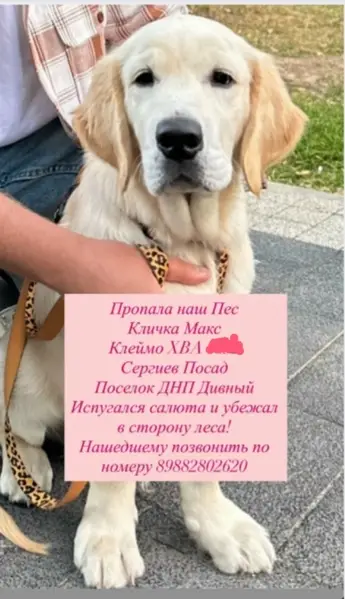 Фрязино, Егорьевское шоссе Найдена собака / найден ретривер https://m.facebook.com/groups/28780?view=permalink&id=54940&refid=18&_ft_=top_level_post_id.54940%3Acontent_owner_id_new.1161%3Aphoto_id.78334%3Astory_location.6%3Astory_attachment_style.photo&__tn__=-R https://www.facebook.com/oleg.zaitsev.54 Просим репост! МО. Фрязино. Найден Голден/Золотистый ретривер Найден золотистый ретривер! 24.08.2019 на Егорьевском шоссе подобрали кобеля, состояние запущенное, возраст 1-1.5года,