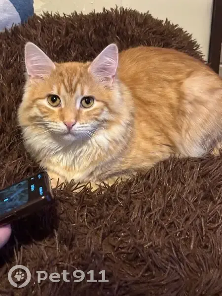 Рыжий котик, очень пушистый хвост,как ёлочка, красивый окрас, возраст котёнка 8-9 мес. Утром 22 марта выбежал из дома, вечером видели последний раз за забором, не смогли поймать, убежал....