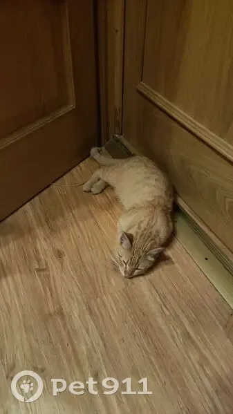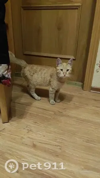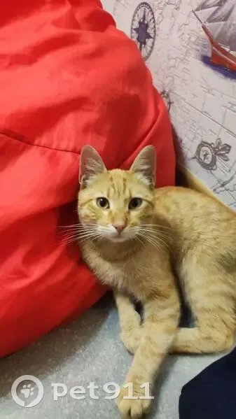 Очень ласковый, молодой, сам подбежал и увязался, мурлычет постоянно, вместо "мяу", скорее, пищит