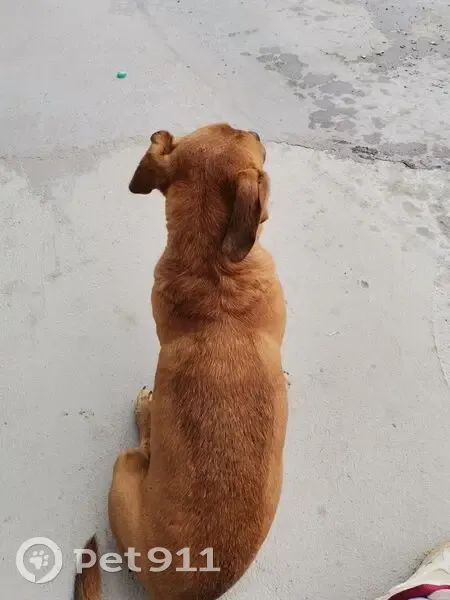 Окрас рыжий, внешне ухоженный, похож на таксу. Перебегал дорогу по пешеходному переходу, но дважды под красный свет, чуть не угодил под колеса. Я стала подзывать его, он сначала не шёл, пошёл к магазину Ермолино. Мы зашли, продавщица сказала что этот пес уже был у неё в этот день вместе с мужчиной средних лет, подвыпившим. Я просидела с ним минут 20 ещё у магазина, затем оставила продавщице свой номер телефона, мало ли мужчина вернётся и будет спрашивать о собаке и забрала его домой. Пес очень спокойный, не лает, даётся гладить, даже на руки пошёл. Дома только лежит, встаёт только попить и покушать.