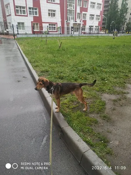 На СТО " Старая дорога" прибежал щенок с ошейником. Похож на гончую. Раннее пост о нем уже был.
