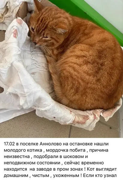 Кот, 7-лет.имя Рыжий, ходит на самовыгул, доверчив , был одет жёлтый ошейник