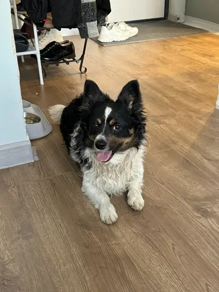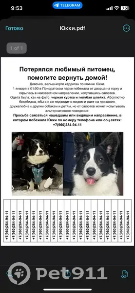 Черно- белый окрас, сама черная, шарфик на шее, нижняя часть хвоста и лапки белые. Была в черной жилетке с резиночками на задние лапки и голубой шлейкой поверх. Пропала 1 января 26 года в Приоратском парке, почти на входе, побежала от дворца на горку и скрылась в неизвестном направлении. Очень-очень добрая, но трусишка, абсолютно безобидна , очень игрива и ласкова, боится шумных мест и больших машин