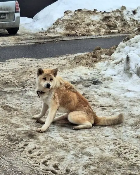 Мальчик, ярко рыжего окраса. На нём была шлейка и рулетка синего цвета.