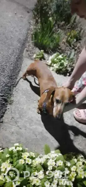 Мальчик, рыжий, на морде и лапках белые пятнышки, будто седина, на вид года 3. Клейма нет, неугомонный, шлейка наша- пытались удержать, гоняется за кошками.