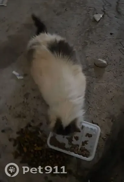 По виду котёнок 5-6 месяцев, очень плакала, мяукала, всего боится, прячется в трубах и под машинами возле пятиэтажки видно, что она домашняя. Прибилась к большим кошкам уличным. Увидели ее в сильный снег, ветер , мороз во дворе, мяукала. На голове тёмный окрас как бабочка, лапки короткие, милый пушистик, с такими красивыми глазками и мордашкой. Возможно его ищут.