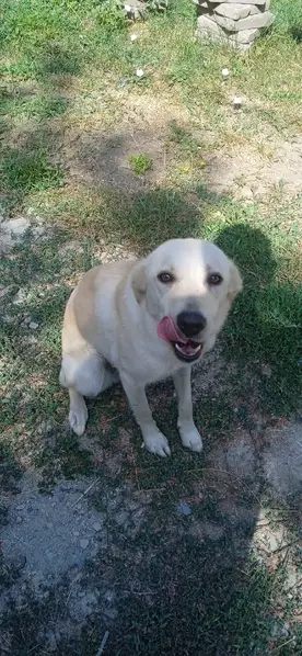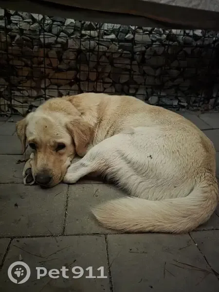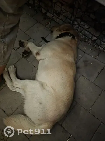 Приблудился кобель лабрадор. Дружелюбный, судя по поведению молодой. На передних лапах проплешены на локтях, нос коричневый с розовым. Ошейник текстильный чёрный. Сейчас обитает в районе кемпинга "под соснами" г. Геленджик 3-й Санаторный пер., 1