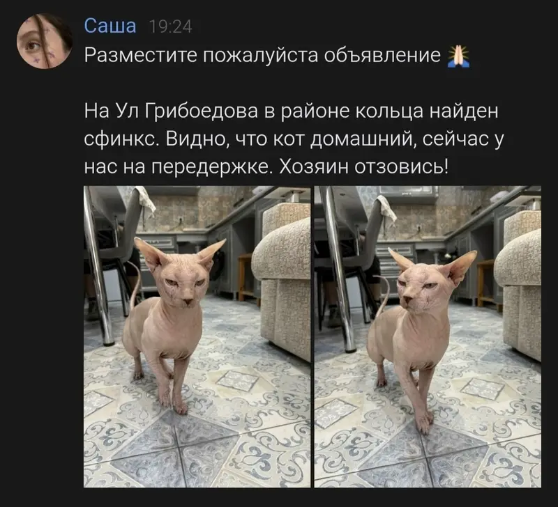 Могли увезти на автомобиле или забрать отдыхающие туристы. Кошка породы канадский сфинкс. Есть шрам от стерелизации