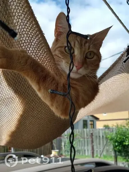 Кастрирован. Чипирован. 5 лет. Пропал 23 февраля 2026 года после 16:40. На момент исчезновения был в зелёном текстильном ошейнике на липучке с подписью адреса. Окрас яркий, полосато-рыжий, подбородок белый. Особые приметы: след трехпалый - ампутирован "указательный" палец на передней левой лапе. Глаза зеленовато-песочные. Уши длинные. Кот среднего роста с несколько удлиненным телом. Пугливый.