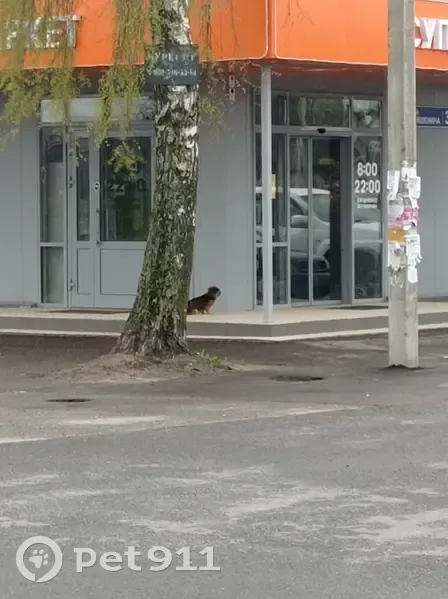 Маленькая собачка у магазина Фрегат в Глинищево Брянской области. Видела в 13:30 17 апреля. Без хозяев.