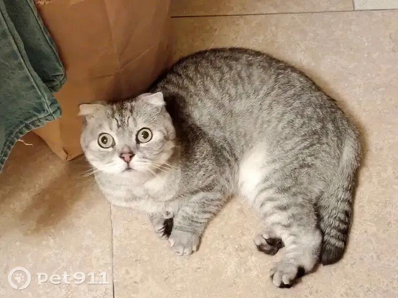 Небольшой серый полосатый кот, шотландский вислоухий, хромает, бегает как заяц. Хвост и лапы укороченные. Отзывается на имя Фидель / Фиделька. Убежал ночью 5 августа, когда бабушка открыла дверь, чтобы выйти в туалет, видели рядом с сараем, но не смогли поймать. Также видели кота на следующий день около 6 вечера, но опять не смогли поймать. Сейчас неизвестно, прячется он у нас на участке или убежал уже далеко, если увидите, огромная просьба сообщить.