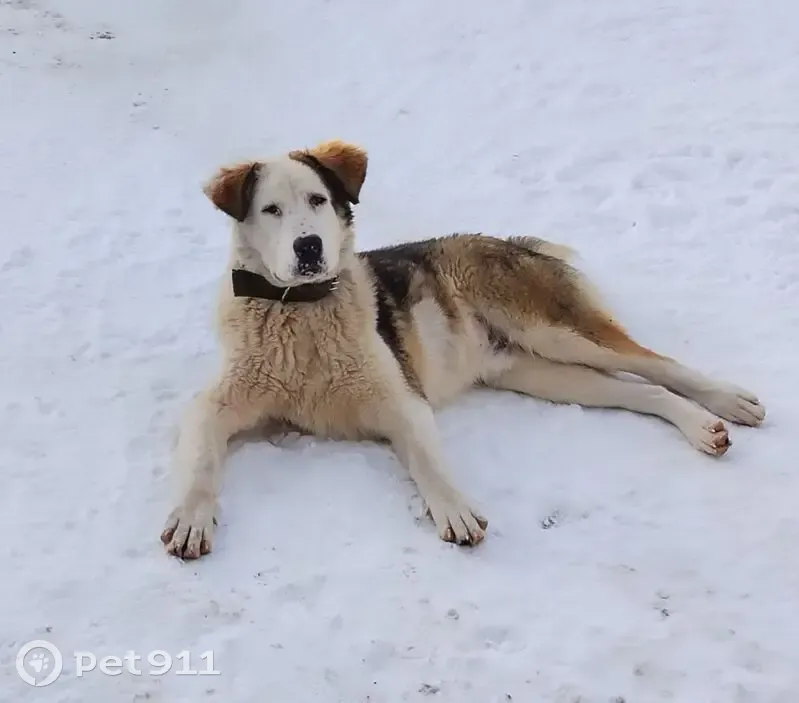 Найдена собака. Прибилась ко двору. Мальчик, молодой пес, породы ориентировочно алабай. Дружелюбный, не гавкает. Окрас молочный с рыжим и серым. На носу чёрные веснушки)