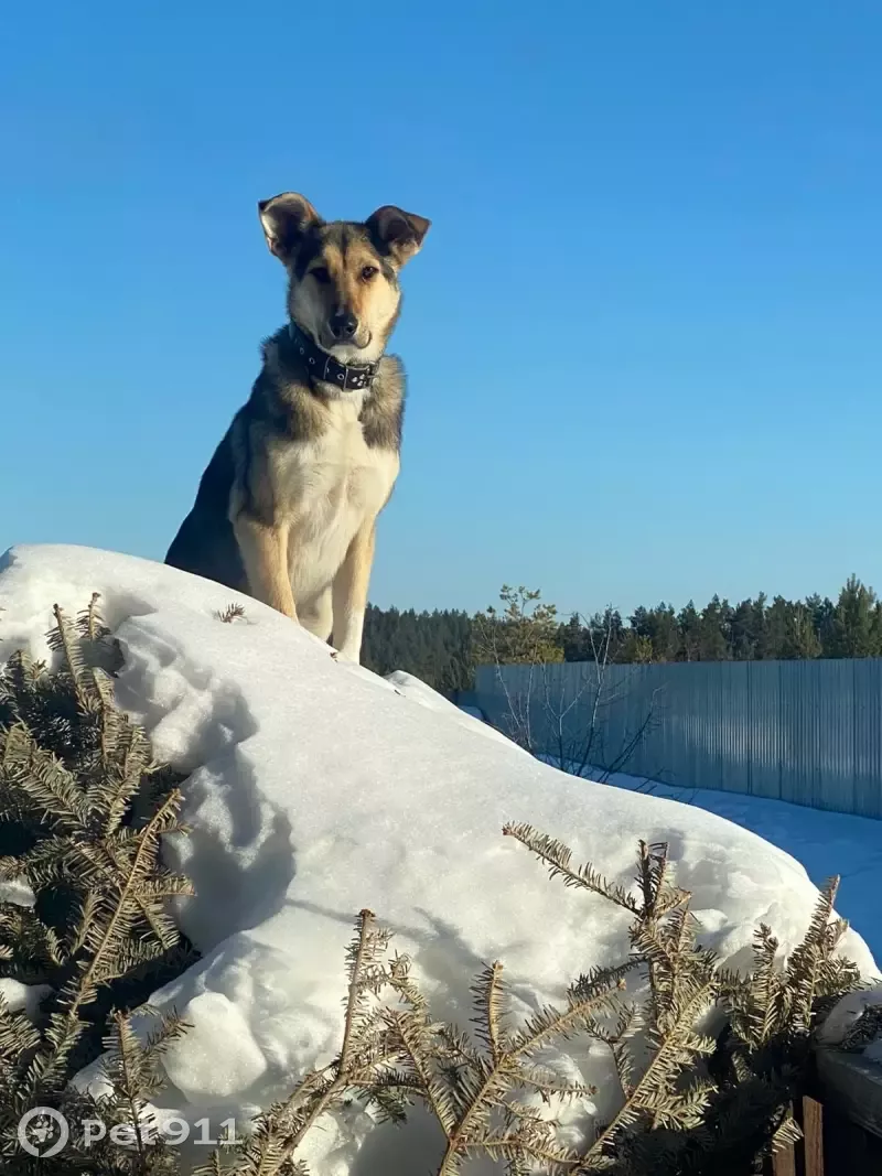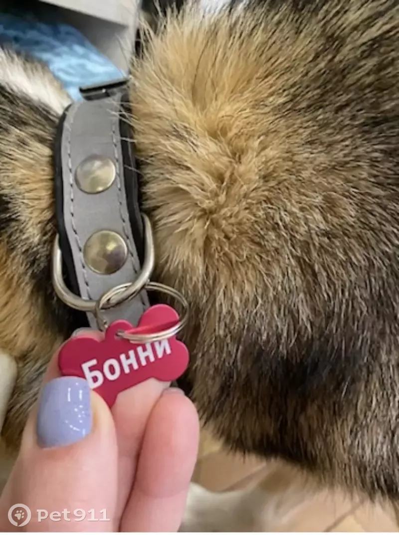 был светоотражающий ошейник с розовым жетоном (там все данные собаки)