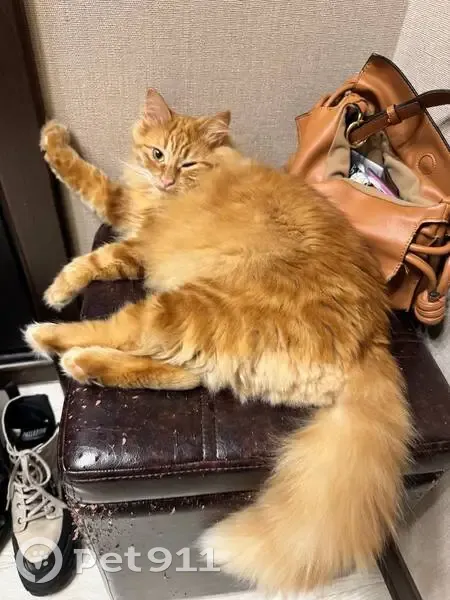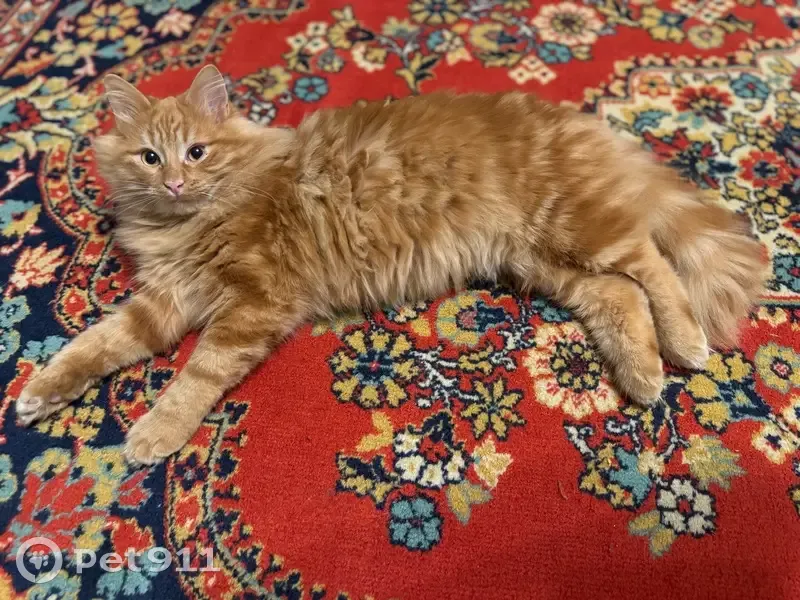 Рыжик котик, 10 месяцев. В ошейнике и с адресником. Очень ласковый. Отзывается на Лео. Крикливый. Кастрирован. Заонить 89165556516