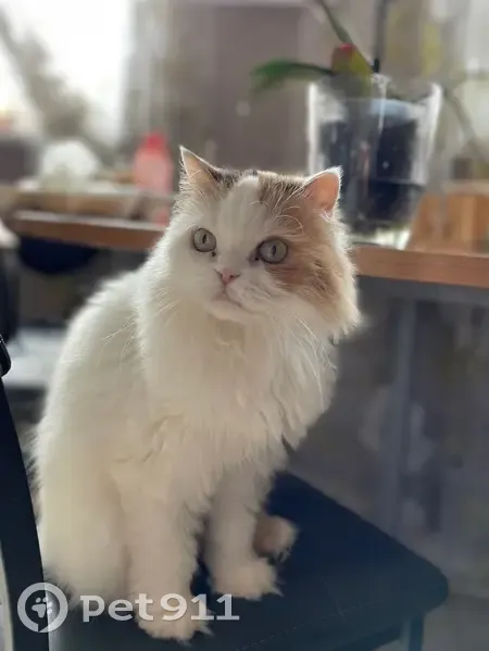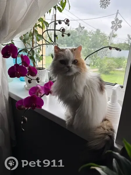 Окрас белый с рыжекоричневыми пятнышками на голове и спинке, хвостик тоже пестрый, пушистая - домашняя, гуляла только во дворе - как обычно ушла в ночь гулять , а утром ее уже не могли найти - видели ее , что сидела за воротами - она так делала , но всегда домой бежала сразу! Пугливая - не пойдет на руки сама , не агрессивная, добрая - пушистая , но очень лёгкая нежная - 10 лет