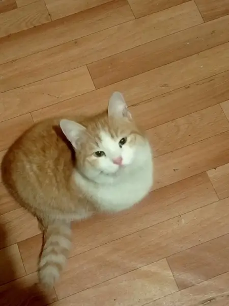 Рыжий с белым кот, под правой лапой выбрита шерсть, кастрированный. Проживает в СНТ Горнощитский.