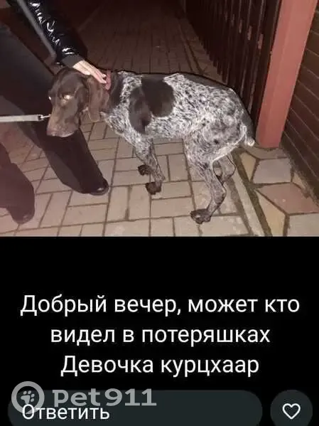 29.12.2024 найдена сука курцхаара. Район Соленого озера, Солнечный, Батайск. Подобрали на Солнечном. Могла прибежать через пустыри от М4. Ищем старых или новых хозяев. Оставить у себя нет возможности. Судя по всему, привыкла к частному дому.
