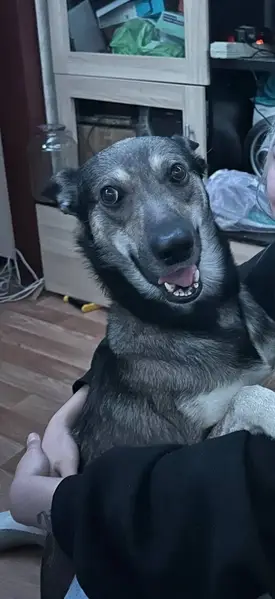 Собака приходит в морозы в подъезд, скорее всего потерялась.