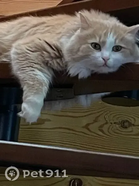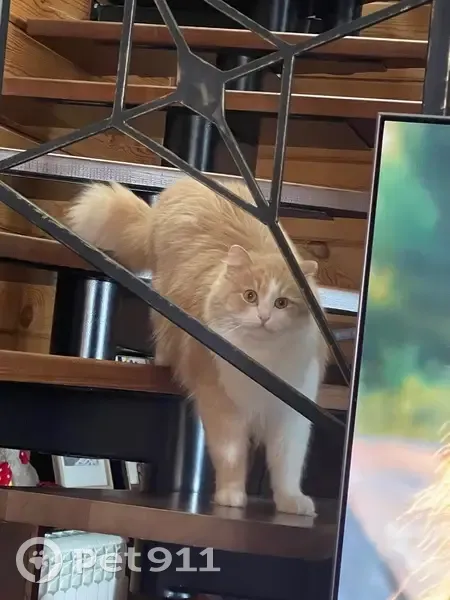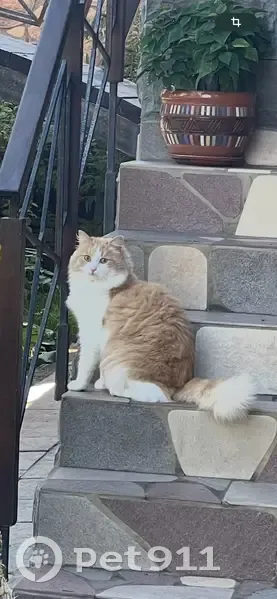 Котика звать Лева. Кот кастрированный. Добрый, доверчивый. Внешне красивый, пушистый, окрас бело рыжий. Длинный и очень пушистый хвост. Привык гулять на улице. Очень ждём его дома.