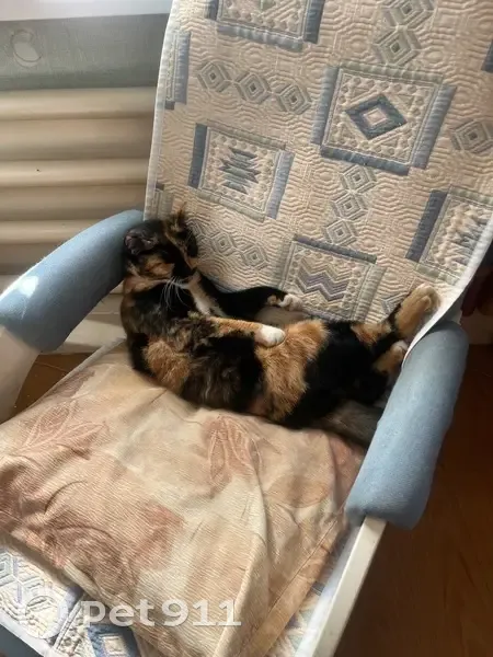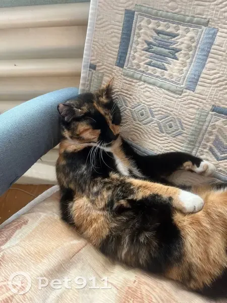 Ушла из частного дома напротив Изумрудного (адрес указан не точный, но живёт в одном из окрестных домов) вечером 27 марта примерно в 9 часов и до сих пор (на момент 10 вечера 28 марта) не вернулась. Это трёхцветная кошка с жёлтыми глазами и красивым окрасом (чёрно-рыжая, но есть белая грудка и белые носочки), на ней должен быть коричневый ошейник с адресником. Умная, своё имя знает, но на руках долго не сидит и, в теории, при попытке хищения, если это причина пропажи, должна была укусить обидчика и вырваться. Обычно так надолго никогда не уходила, дорогу не пересекала и всегда гуляла где-то по окрестным местам по одну сторону дороги, где находится её дом. Уже обошли все окрестные дома и звали её, спросили у соседей, никто не видел. С десяток лет назад у нас уже похитили кошку, поэтому мы не исключаем такой вариант снова, с неё могли содрать ошейник и увезти