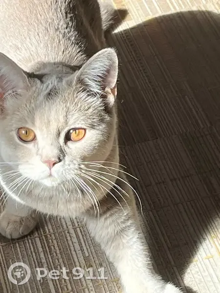 кот серого цвета, глазки янтарные. Когда зовешь малыш или кс кс кс вертит головой в разные стороны. Очень игривый , добрый и возможно напуган. Когти состржены. Обсотоятельства пропажи выпрыгнул в окно или выбежал за дверь пока выходили