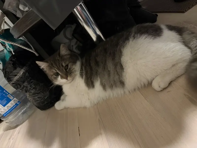 Кошечка упитанная, глаза голубые, окрас дымчато-белая, кошечке 3 года