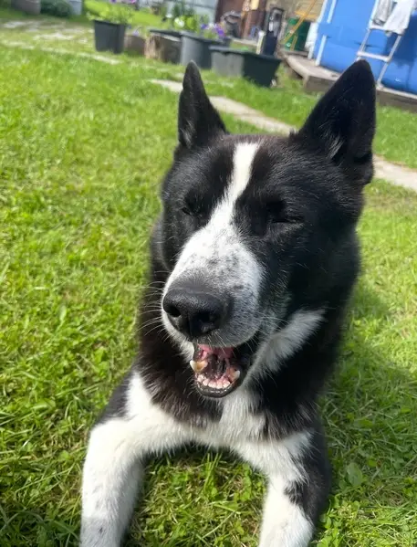 Найдена собака деревня Григорово Талдомский район. Высота в холке приблизительно 60 см. Окрас черно- белый похож на русско- европейскую лайку.Возраст до года. Добрый, ласковый, неконфликтный с детьми и другими животными. Временно взяли к себе. Мы взять не можем, у самих 2 собаки и 2 кота. Срочно ищем хозяев!!!! Уезжаем в Москву 21 августа. Пропадёт жалко!!!!